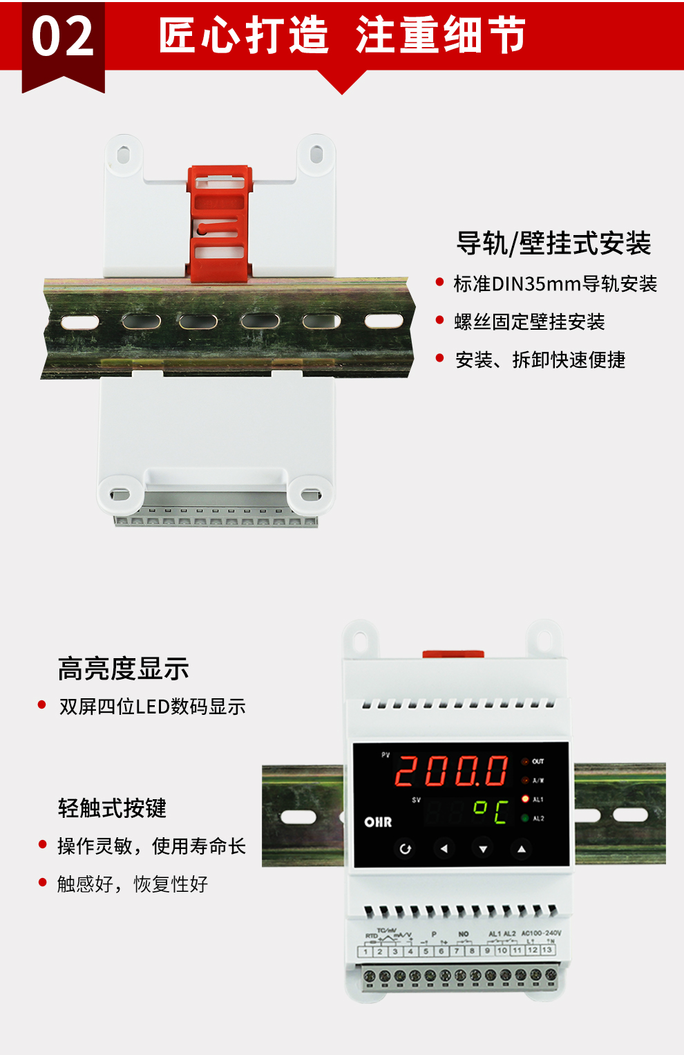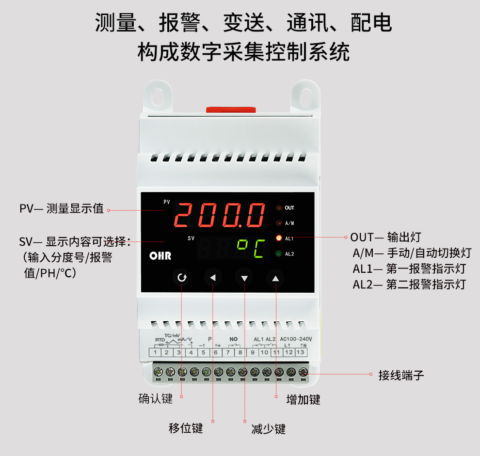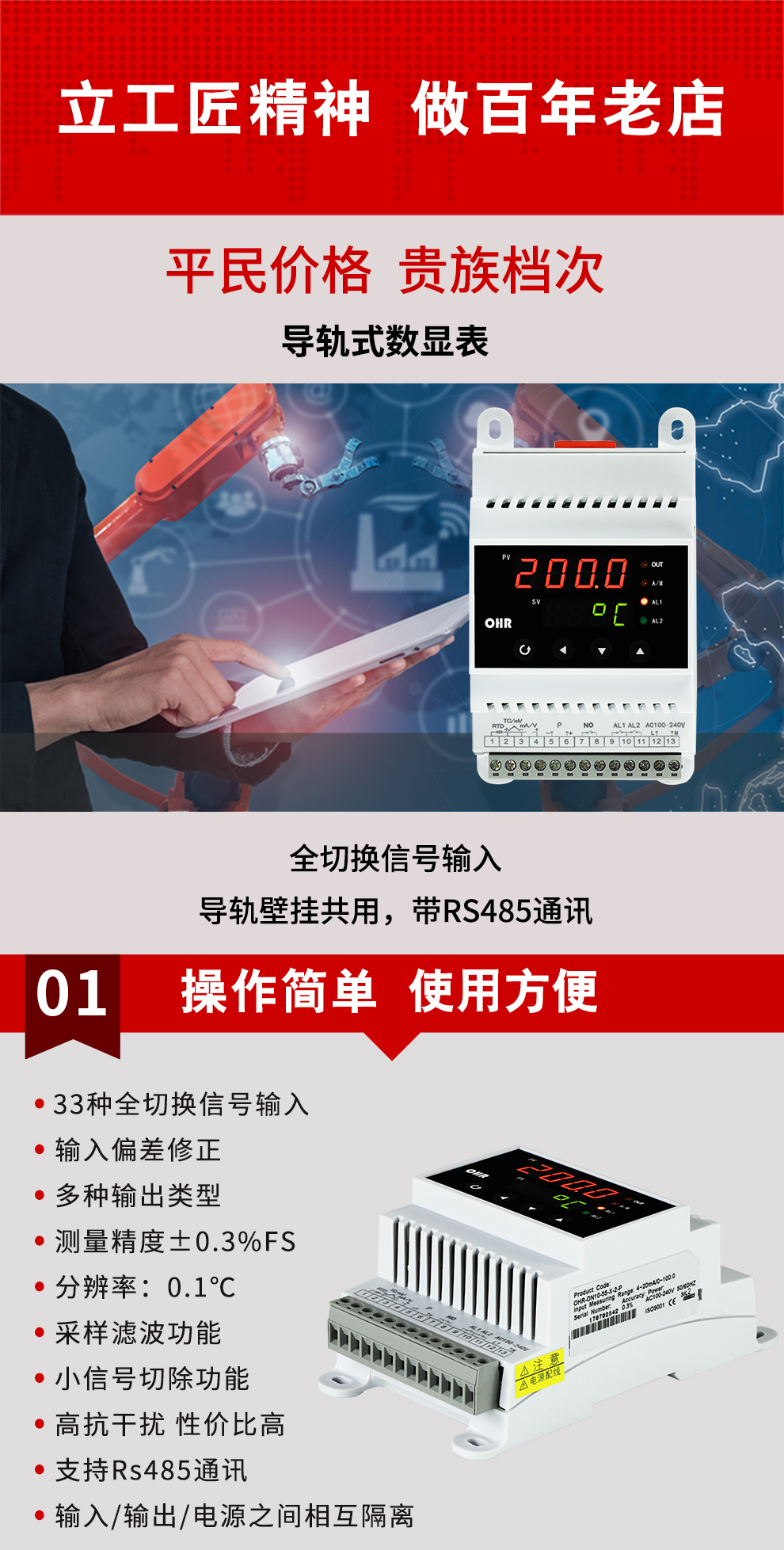 導(dǎo)軌式數(shù)字顯示控制儀采用了表面貼裝工藝,全自動貼片機生產(chǎn),具有很強的抗干擾能力??蓪囟取毫?、液位等工業(yè)過程參數(shù)進(jìn)行測量、顯示、報警控制、變送輸出、數(shù)據(jù)采集及通訊。