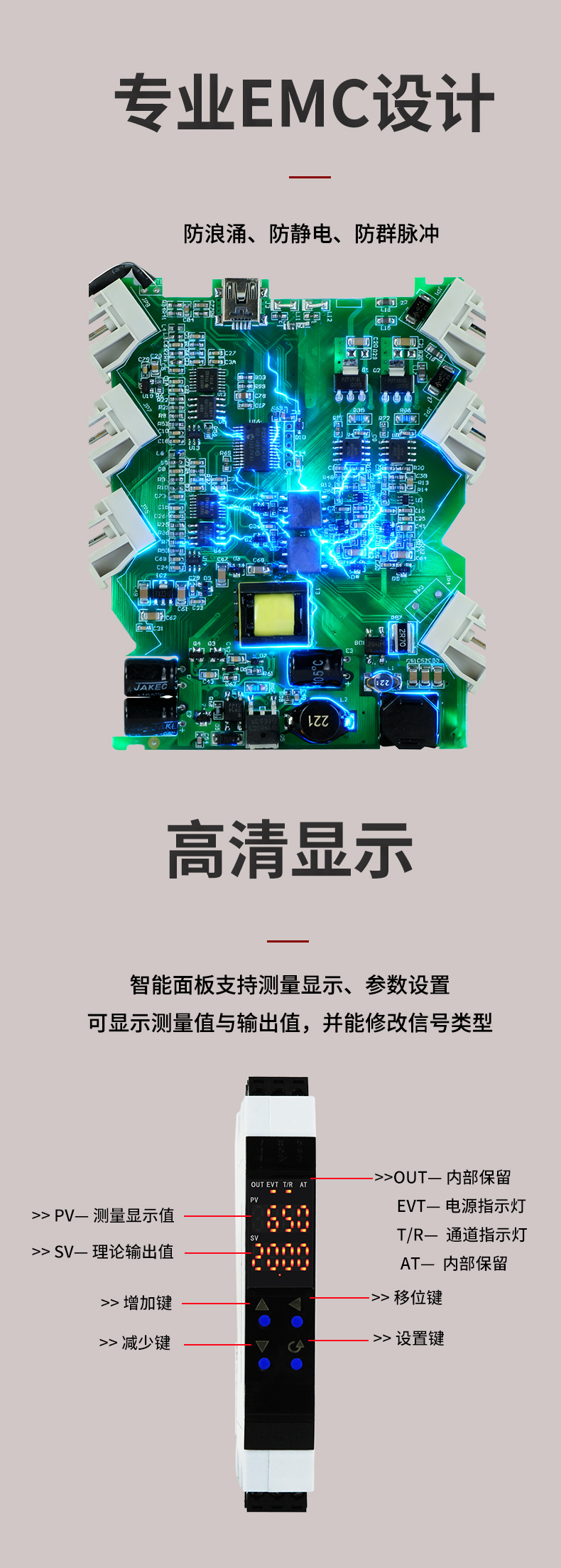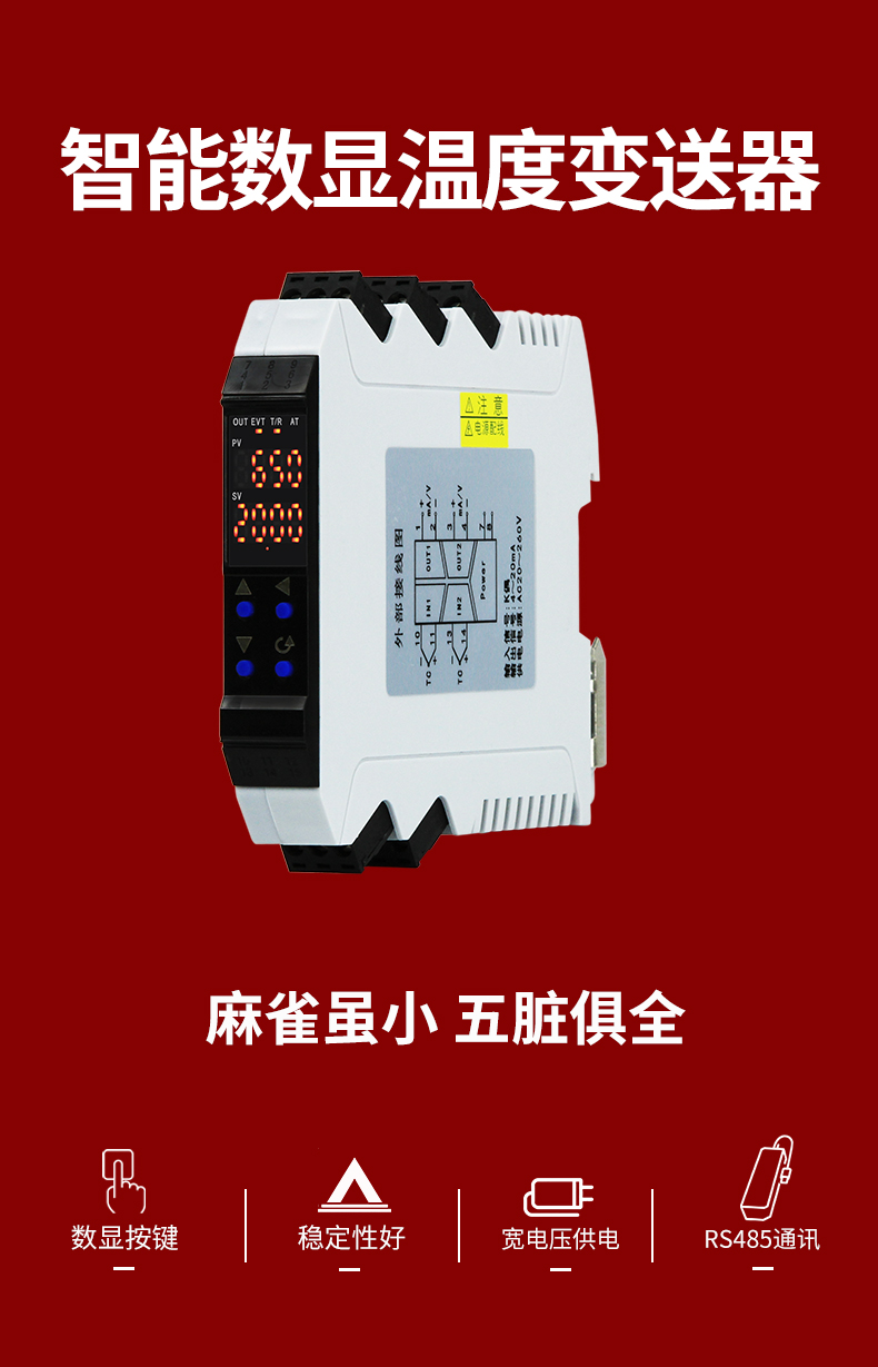 虹潤公司是專業生產溫度變送器的國家專精特新“小巨人”企業。生產的智能數顯溫度變送器,具有高清顯示單元,溫度傳感器類型及量程可設置,寬范圍電源供電,高抗干擾,帶RS485通訊等特點。產品獲得具備減震抗干擾能力的溫度變送器、信號隔離器、一種二端子模塊、無源信號隔離器等4項國家發明專利,主持起草物聯網智能溫度儀表、現場設備工具(FDT)接口規范、工業過程控制系統用模擬輸入兩位或多位輸出儀表、工業過程測量和控制系統用溫度變送器等4項國家標準,參與國際5G標準制定,取得智能數顯溫度變送器等2項相關軟件著作權。產品廣泛應用于電力、化工,冶金、制藥、機械制造、樓宇自控等工業領域現場自動化測溫過程。