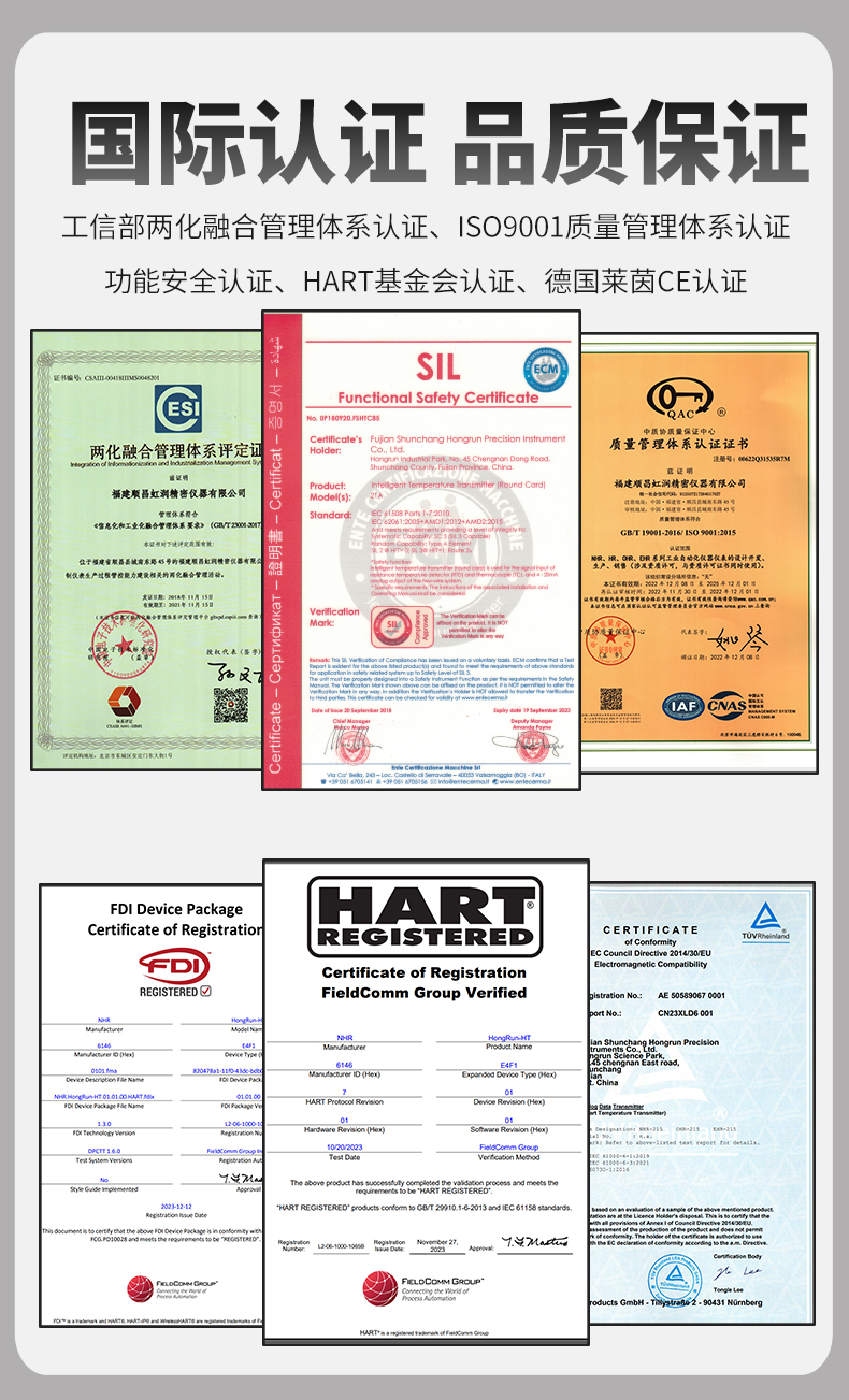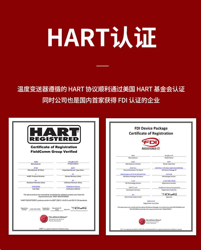 虹潤(rùn)公司是專(zhuān)業(yè)生產(chǎn)溫度變送器的國(guó)家專(zhuān)精特新“小巨人”企業(yè)。生產(chǎn)的智能數(shù)顯溫度變送器,具有適配各類(lèi)溫度傳感器,精度高,通過(guò)編程線修改輸入信號(hào)類(lèi)型及量程,高抗干擾,HART或485通訊等特點(diǎn)。該產(chǎn)品不僅通過(guò)HART基金會(huì)認(rèn)證、德國(guó)萊茵 CE 認(rèn)證與 SIL 功能安全認(rèn)證,還獲得具備減震抗干擾能力的溫度變送器、信號(hào)隔離器、一種二端子模塊、無(wú)源信號(hào)隔離器等4項(xiàng)國(guó)家發(fā)明專(zhuān)利,主持起草物聯(lián)網(wǎng)智能溫度儀表、現(xiàn)場(chǎng)設(shè)備工具(FDT)接口規(guī)范、工業(yè)過(guò)程控制系統(tǒng)用模擬輸入兩位或多位輸出儀表、工業(yè)過(guò)程測(cè)量和控制系統(tǒng)用溫度變送器等4項(xiàng)國(guó)家標(biāo)準(zhǔn),參與國(guó)際5G標(biāo)準(zhǔn)制定,取得、HART溫度變送器、智能溫度變送器等3項(xiàng)相關(guān)軟件著作權(quán)。產(chǎn)品廣泛應(yīng)用于石油、化工、電力、冶金、制藥、食品、水處理等各種工業(yè)領(lǐng)域。