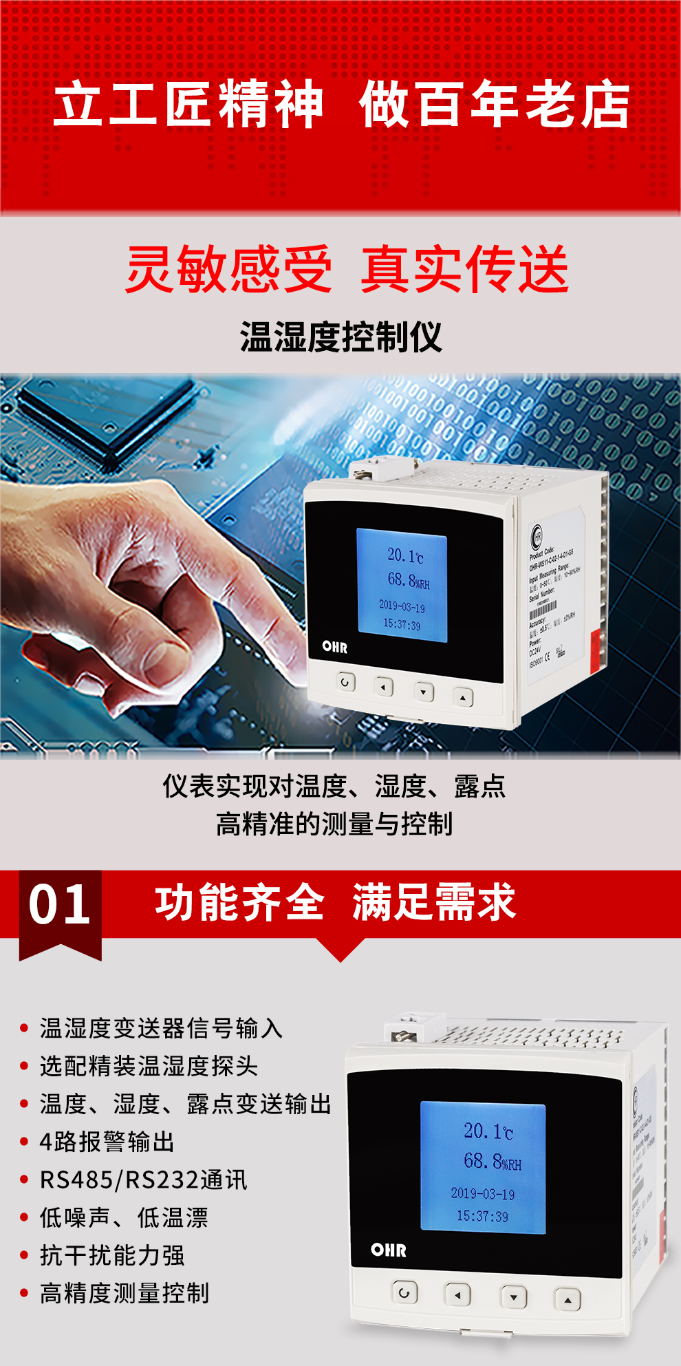 OHR-WS10系列溫濕度控制儀以先進的32位ARM處理器為核心,采用進口高性能溫濕度傳感器,可同時對被測環境的溫度、濕度進行測量和控制,并可通過溫、濕度計算出露點。它具有精度高、穩定性強、響應速度快等特點,適用于通訊機房、辦公室、醫院、檔案館、博物館、賓館、樓宇自控等場所的溫濕度測量。