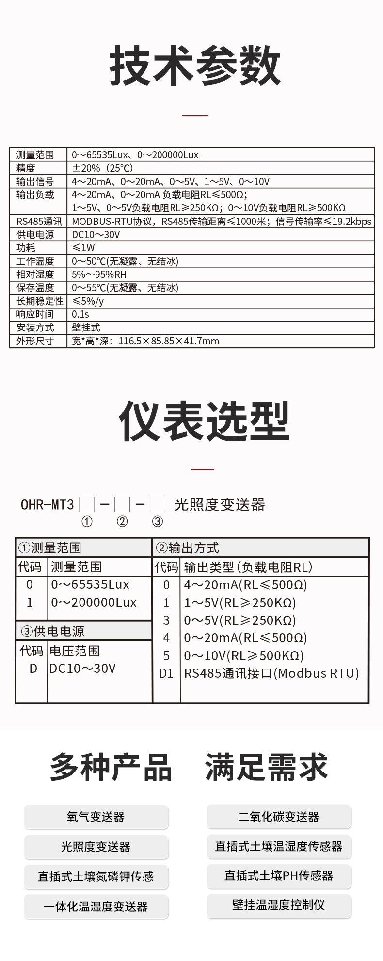 虹潤公司是專業生產環境監測儀表的國家專精特新“小巨人”企業。生產的光照變送器,具有高精度感光傳感器,響應靈敏,準確度高,低功耗,模擬量變送輸出或RS485通訊等特點。產品獲得一種農業監控變送器、一種儀表電源等2項實用新型專利,主持起草現場設備工具(FDT)接口規范、物聯網總體技術智能傳感器特性與分類等2項國家標準,參與國際5G標準制定,取得農業監測變送器等3項相關軟件著作權。產品廣泛應用于溫室大棚、花卉養殖、科研實驗、智能樓宇、戶外照明等環境場合對光照度的檢測。