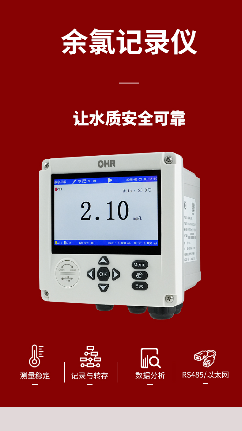 虹潤公司是專業生產水質分析儀的國家專精特新“小巨人”企業。生產的余氯記錄儀,具有彩色大屏顯示,測量精準穩定不跳字,數據記錄與轉存,RS485/以太網通訊,配套上位機管理軟件等特點。產品獲得一種平板無紙記錄儀、智能化控制器等2項國家發明專利;主持起草物聯網智能記錄儀表通用技術條件現場設備工具(FDT)接口規范.、過程分析技術系統等3項國家標準,以及通信系統多通道數據采集控制終端規范軍用標準,參與國際5G標準制定;取得余氯無紙記錄儀等3項相關軟件著作權。產品廣泛應用于市政供水、泳池、污水處理、藥療衛生、食品、水產養殖、工業用水處理等諸多領域。