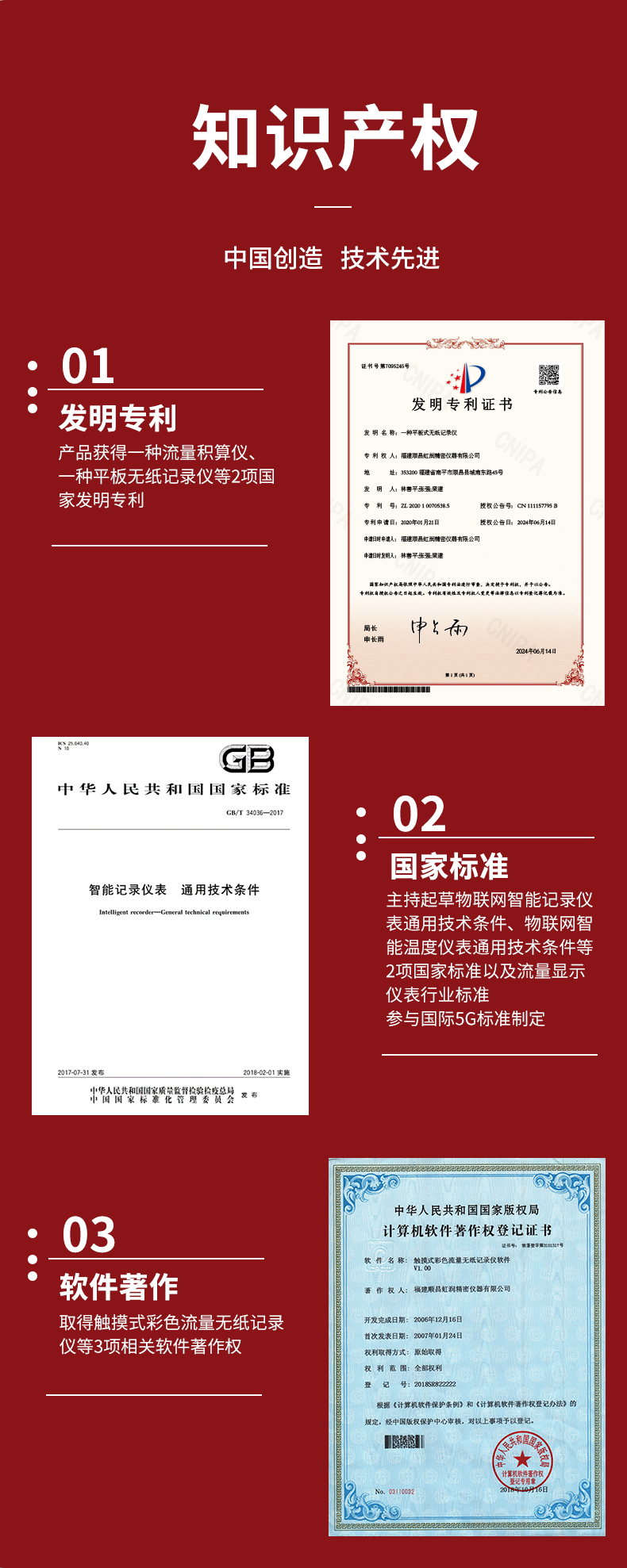 虹潤公司是專業生產流量積算儀的國家專精特新“小巨人”企業。生產的觸摸屏流量儀,具有屏幕大厚度薄,兼容各種流量計,帶貿易結算功能,RS485/以太網通訊,5/7/9英寸可選等特點。產品獲得一種流量積算儀、一種平板式無紙記錄儀等2項國家發明專利,主持起草物聯網智能記錄儀表通用技術條件、封閉管道中流體流量的測量、基于HART協議的電磁流量計等3項國家標準,參與國際5G標準制定,取得觸摸式彩色流量無紙記錄儀等3項相關軟件著作權。產品廣泛應用于石化、冶金、制藥、環保能源、農業灌溉、污水處理系統等諸多領域。